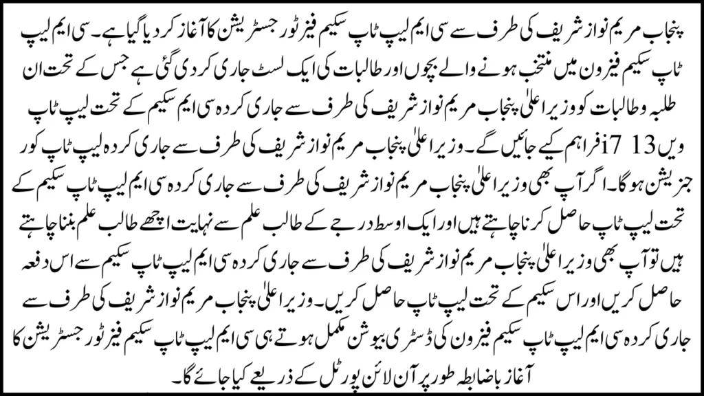 Punjab Maryam Nawaz Sharif has started the CM Laptop Scheme Phase 2 registration. A list of boys and girls selected in the CM Laptop Scheme Phase One has been released, under which these boys and girls will be provided with laptops under the CM Scheme issued by Chief Minister Punjab Maryam Nawaz Sharif.